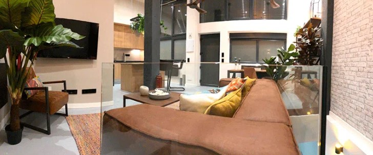 Zarówno w remoncie, jak i w projektowaniu mebli, które zostały stworzone przez pandoapartments.es dla tego projektu, zastosowano zasady loftów w stylu industrialnym: widoczne materiały, surowe drewno, naturalne wykończenia i otwarte przestrzenie z wysokimi sufitami.